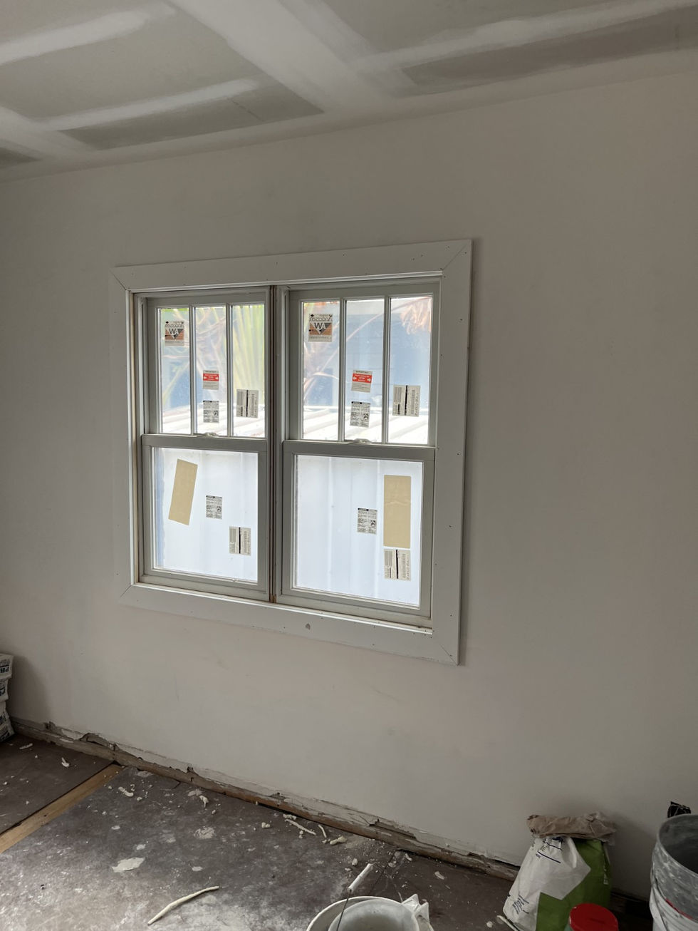 This project highlights the installation of window trim , including double and tripple windows, as well as the treatment of windows with white trim in unfinished rooms.